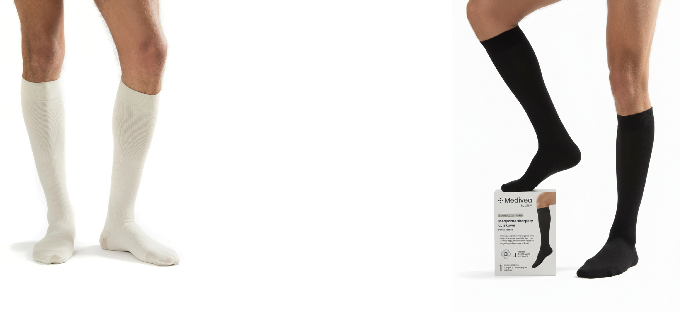 Stopniowana kompresja Medivea® — ulga, wsparcie i komfort od stóp aż po kolana.